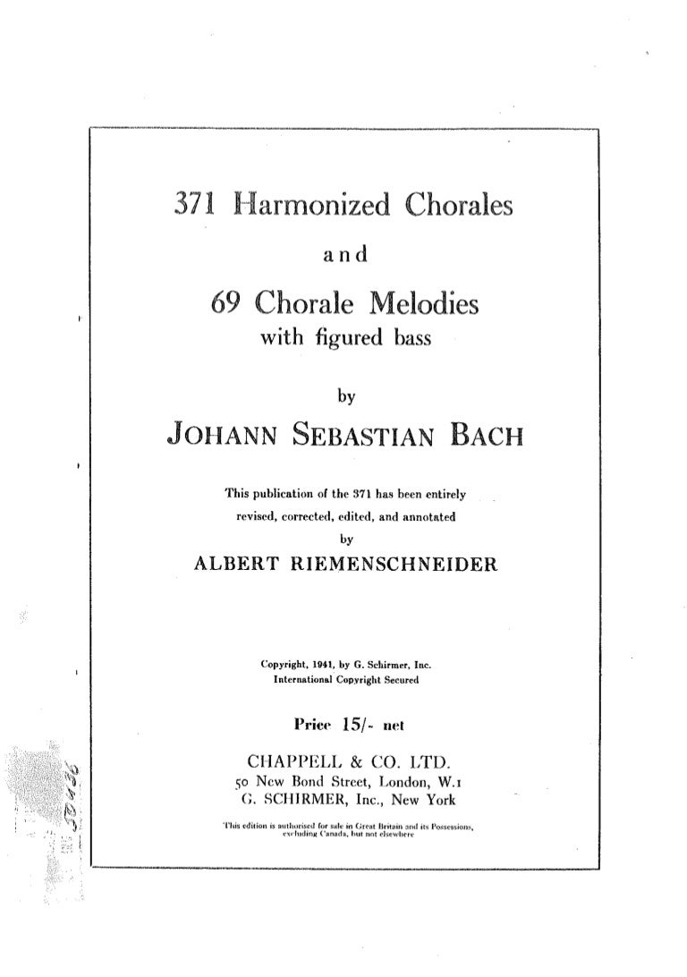Only one verse of the many that each. 4 Albert Riemenschneider commentary 371 Harmonized Chorales and 69 Chorale Melodies with Figured Bass by Johann Sebastian Bach New York. The JSBChorales website by.
